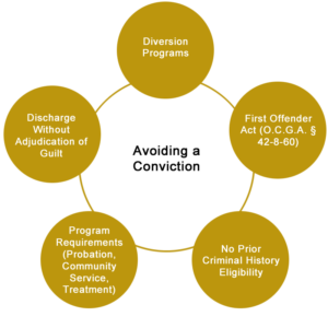Under Georgia law, diversion and first-offender programs exist that provide eligible defendants a chance to avoid a permanent conviction on their record, particularly those who have no prior criminal history.